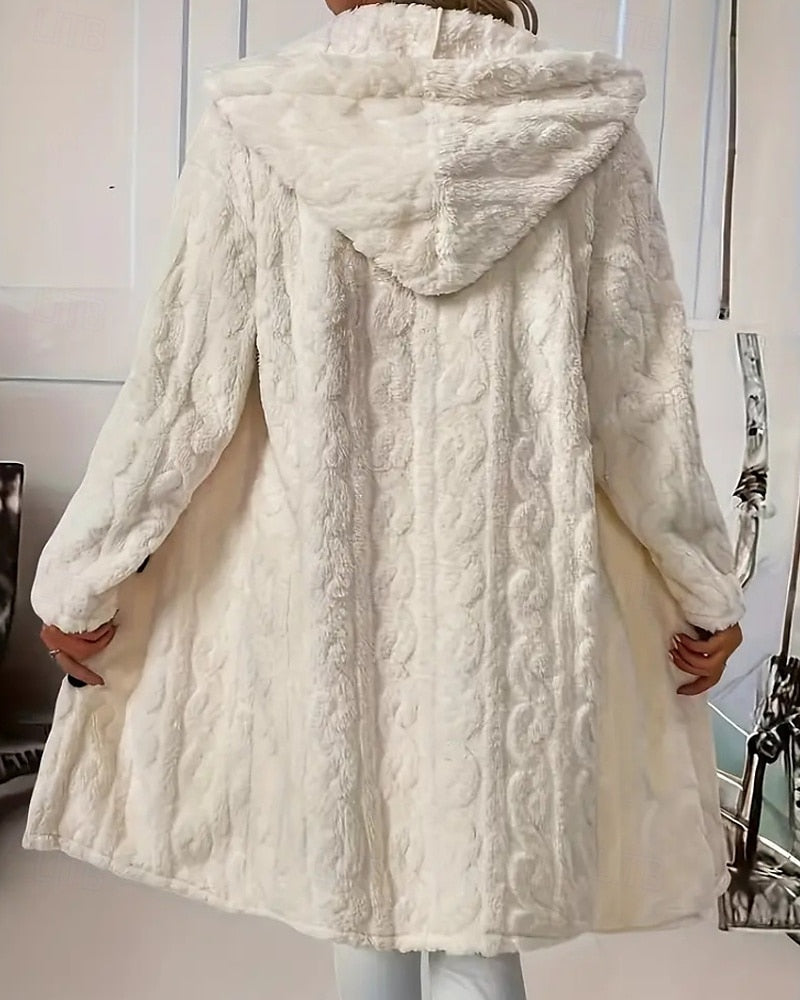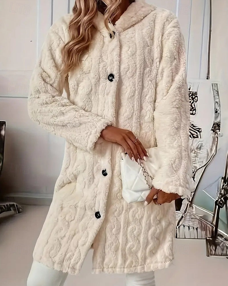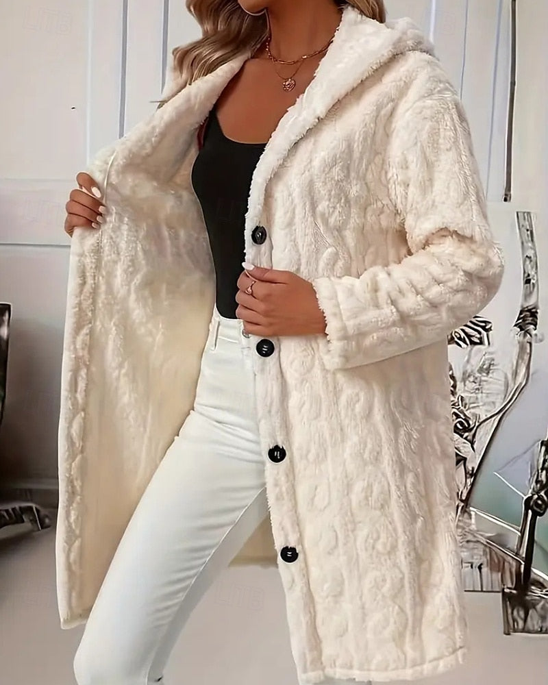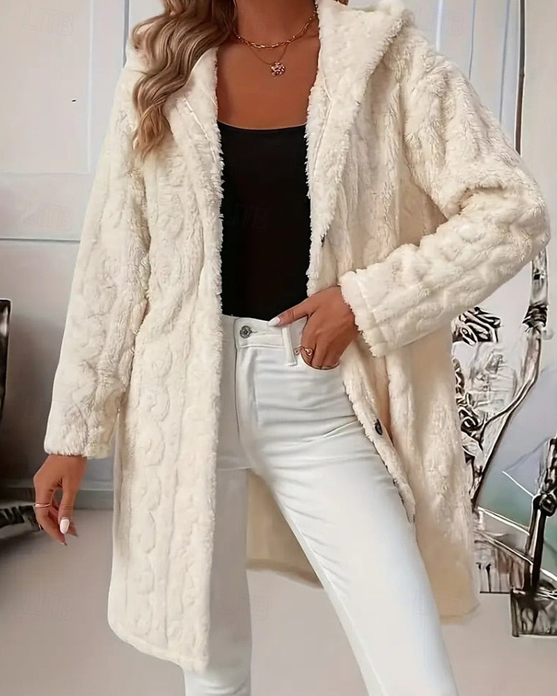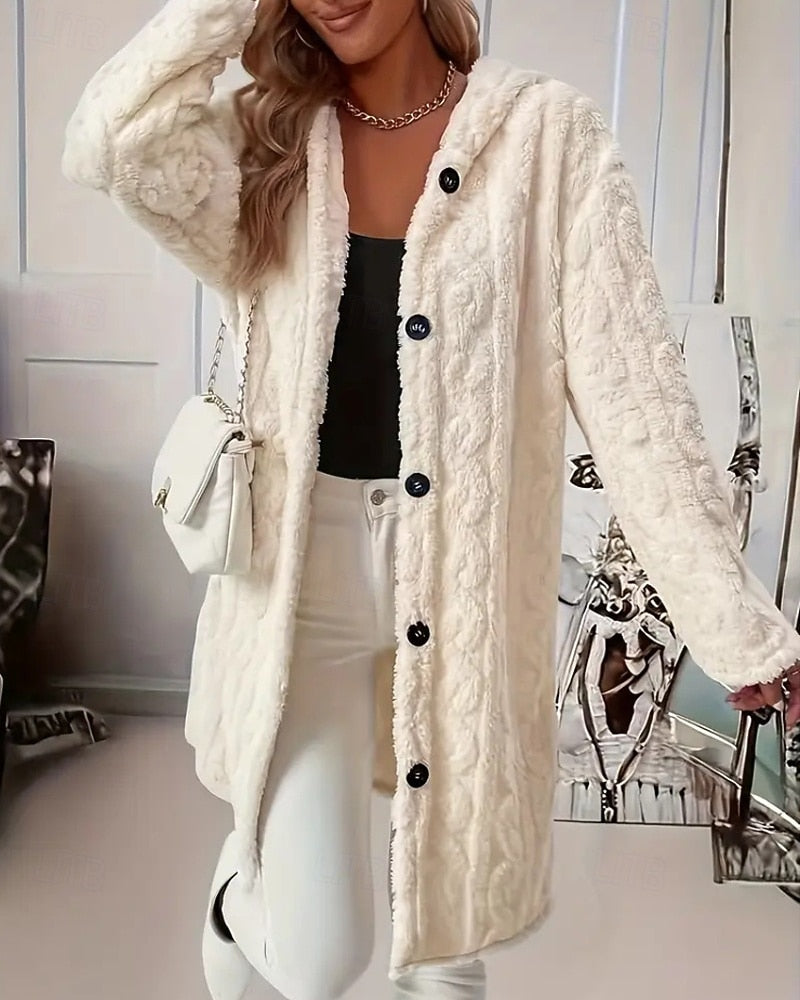 Damenmantel mit Kapuze, Knopfleiste und langen Ärmeln